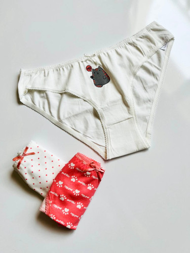 پک ۳ عددی شورت نخی زنانه کوزا ترکیه طرح گربه و قلب