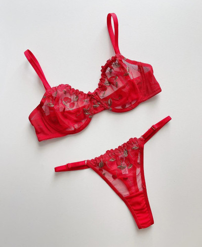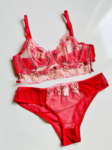 ست سوتین و شورت توری فانتزی زنانه قرمز(جعبه دار)