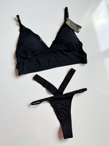 ست مشکی شورت و سوتین هارنس دار گیپوری زنانه
