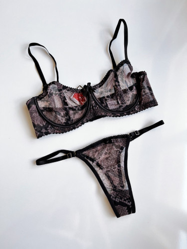 ست شورت و سوتین فانتزی توری زنانه طرح پوست ماری