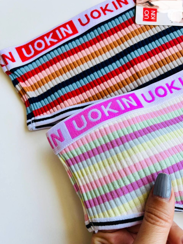 شورتای خوش آب و رنگ طرح راه راه جون میده برای تابستون🔅 برند Uokin، جنس نخ پنبه کبریتی فوق العاده نرم ولطیف فاق ضدحساسیت