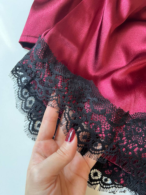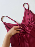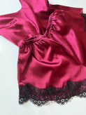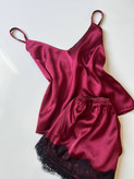 ست تاپ شلوارک ساتن قرمز آلبالویی زنانه
