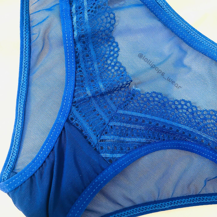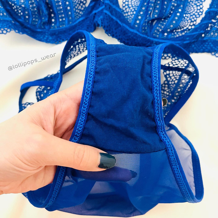 ست آبی شورت و سوتین فنردار توری زنانه