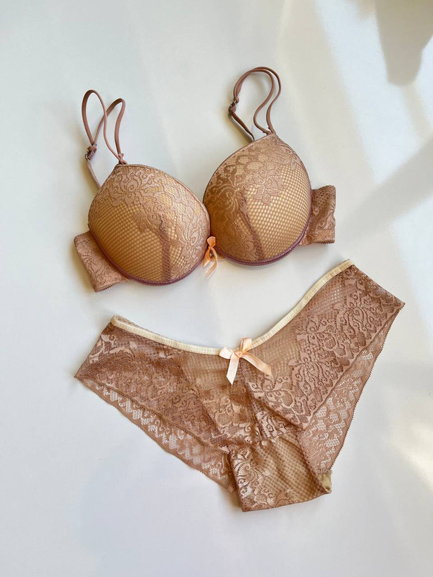 ست فانتزی شورت و سوتین اسفنجی جکدار زنانه (نسکافهای)
