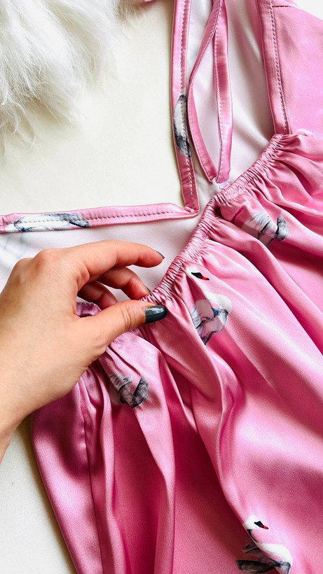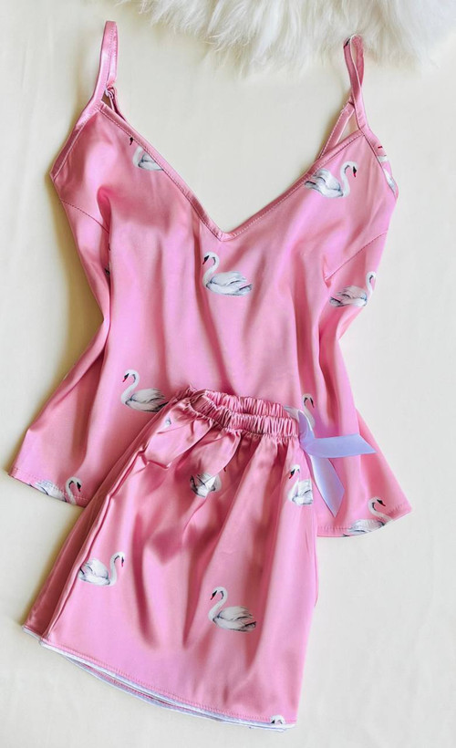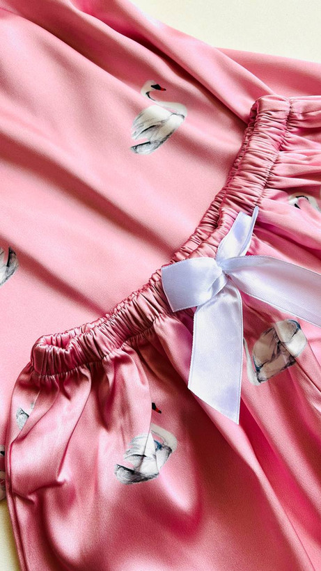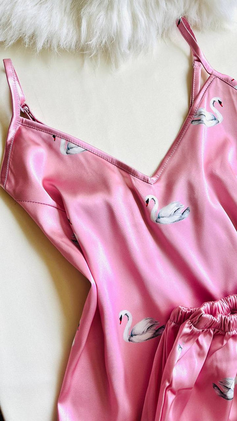 ست تاپ شلوارک زنانه ساتن طرح قو
