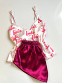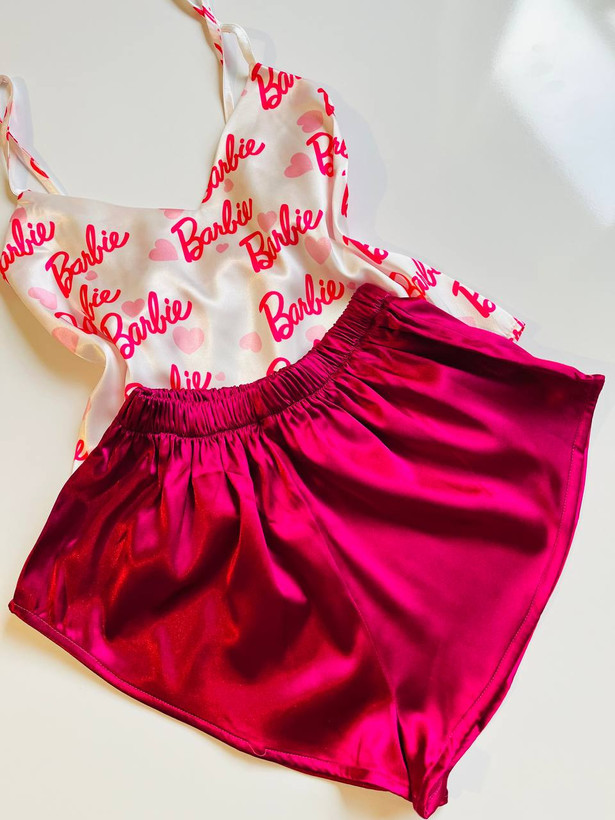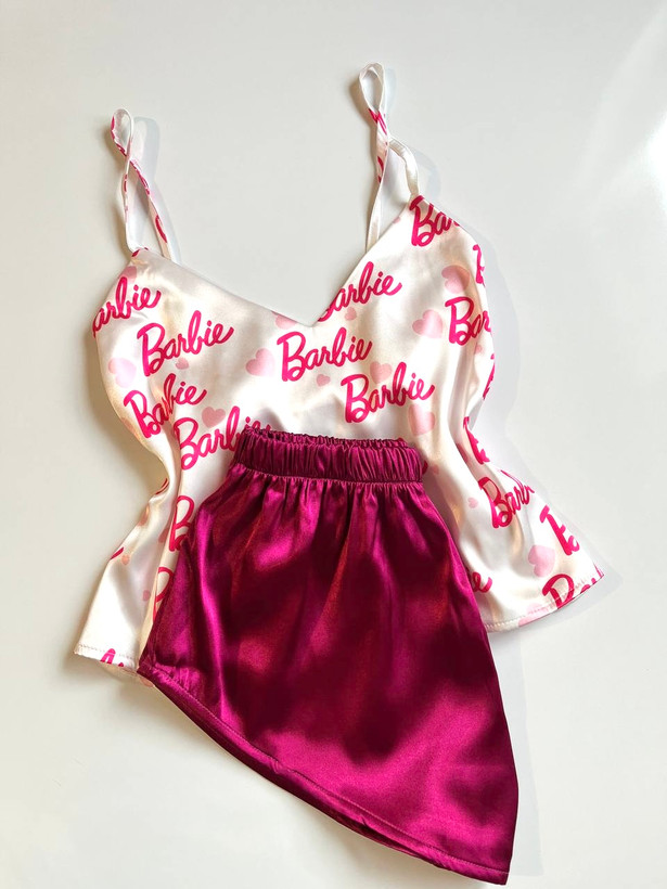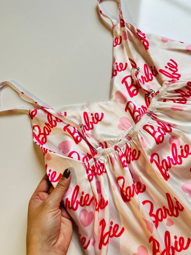 اینم ست لباس خواب باربی کیوت😍 جنسش ساتن ال ایکسه، فوق العاده با کیفیت با دوخت تمیز💓 بند تاپ رگلاژدار و قابل تنظیم سایز