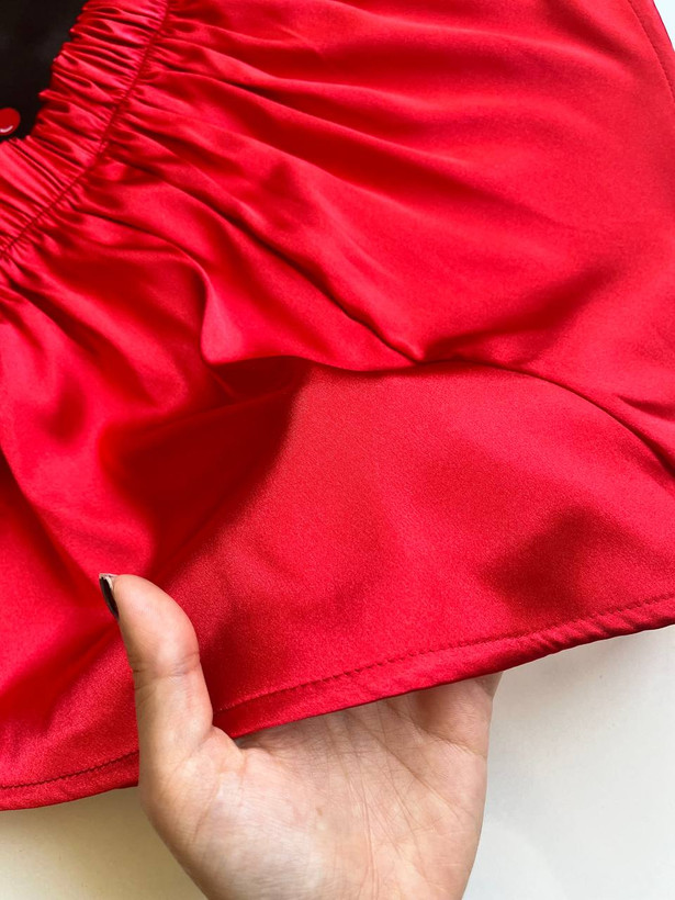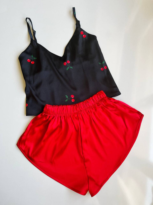 ست تاپ شلوارک ساتن طرح آلبالو زنانه