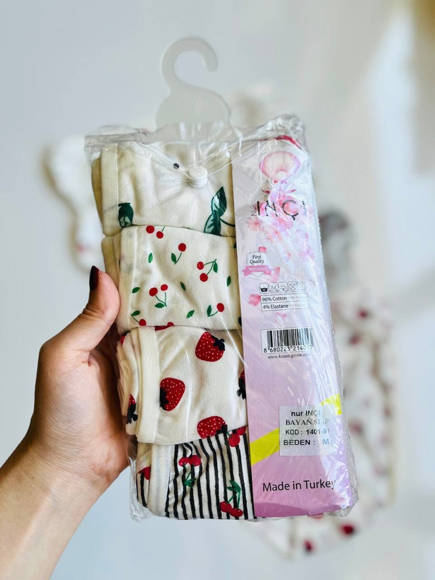 پک ۴ عددی شورت نخی زنانه دخترانه طرح آلبالو اینچی ترکیه